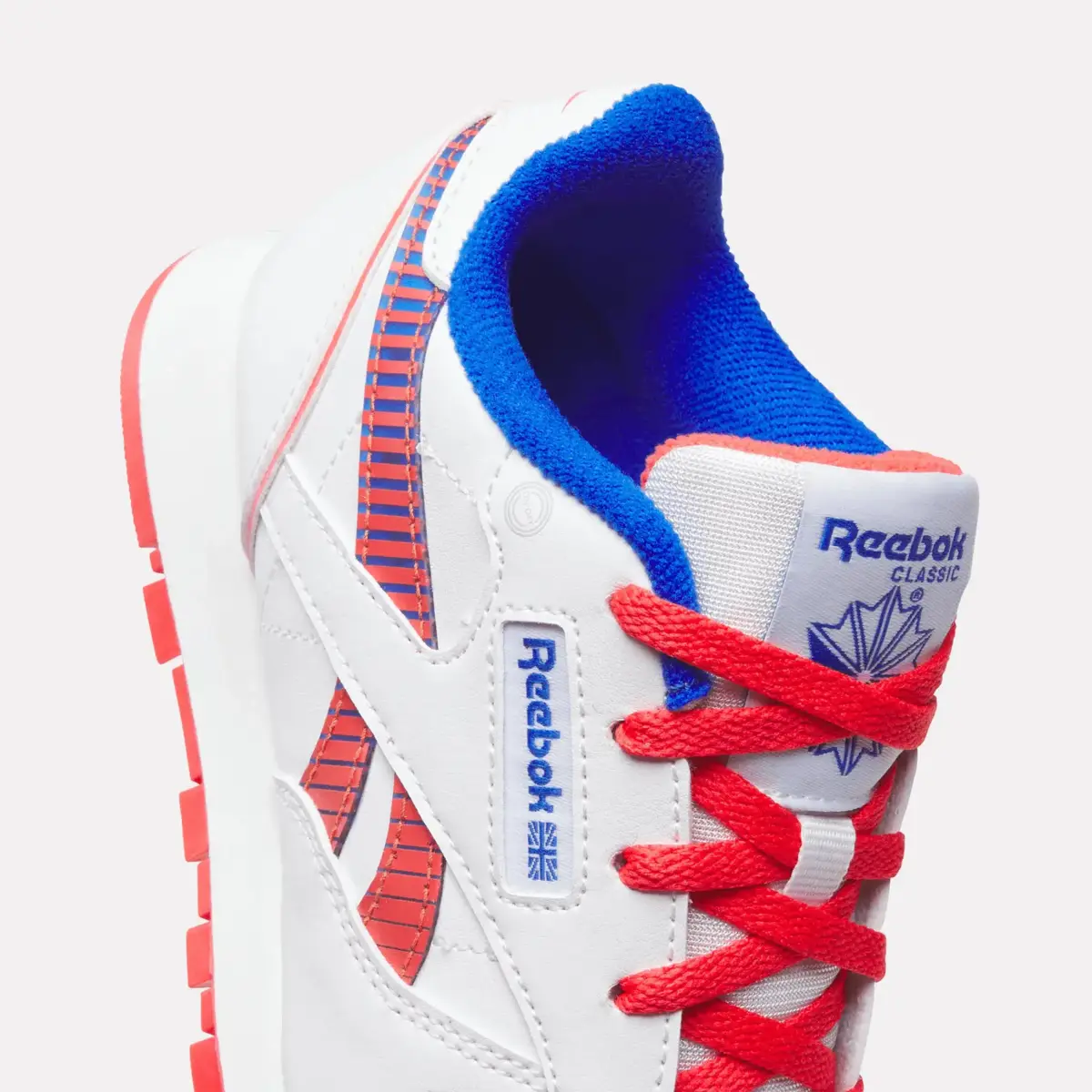 Every step, jump or run will be more dramatic when he’s wearing these boys’ Reebok Classic Leather shoes. That’s because the side stripes flash every time his foot lands. A switch makes it easy to turn the lights on and off.