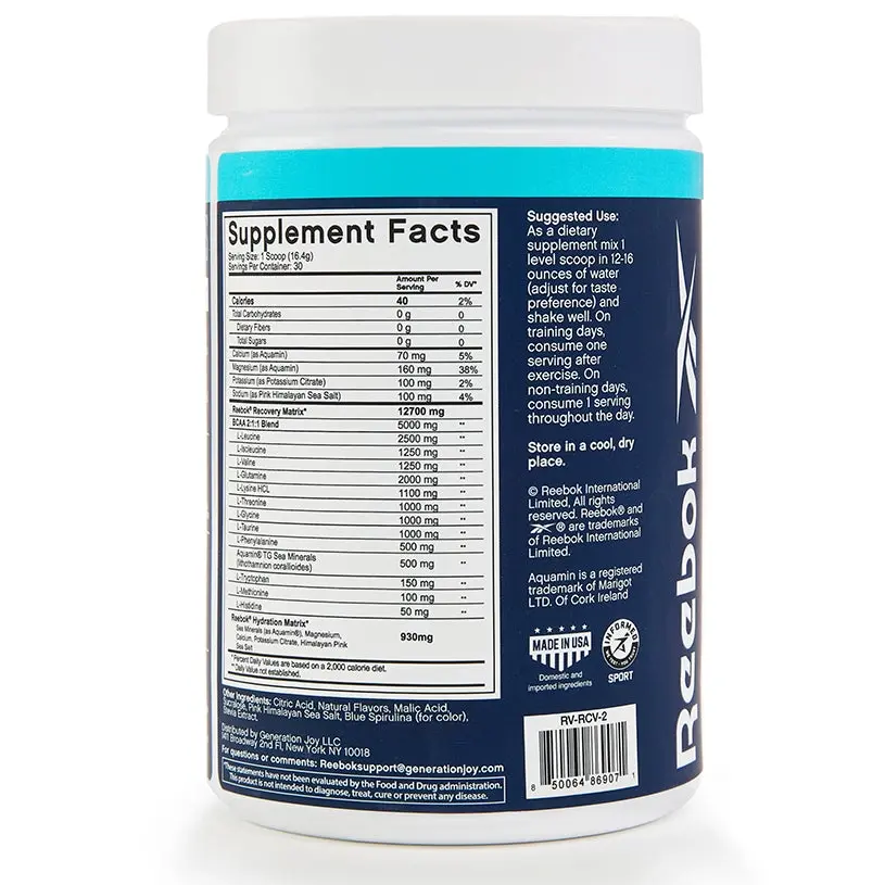 You’ve put in the work—now recover like a pro. Built on Reebok’s legacy of supporting athletes, [REE]COVER provides 8g of Essential Amino Acids (EAAs), 5g of Branched-Chain Amino Acids (BCAAs) and top-shelf electrolytes from sea minerals and Pink Himalayan Sea Salt, to help you recover faster and stronger. Trust the brand that’s fueled champions to give your muscles the nutrients they need.