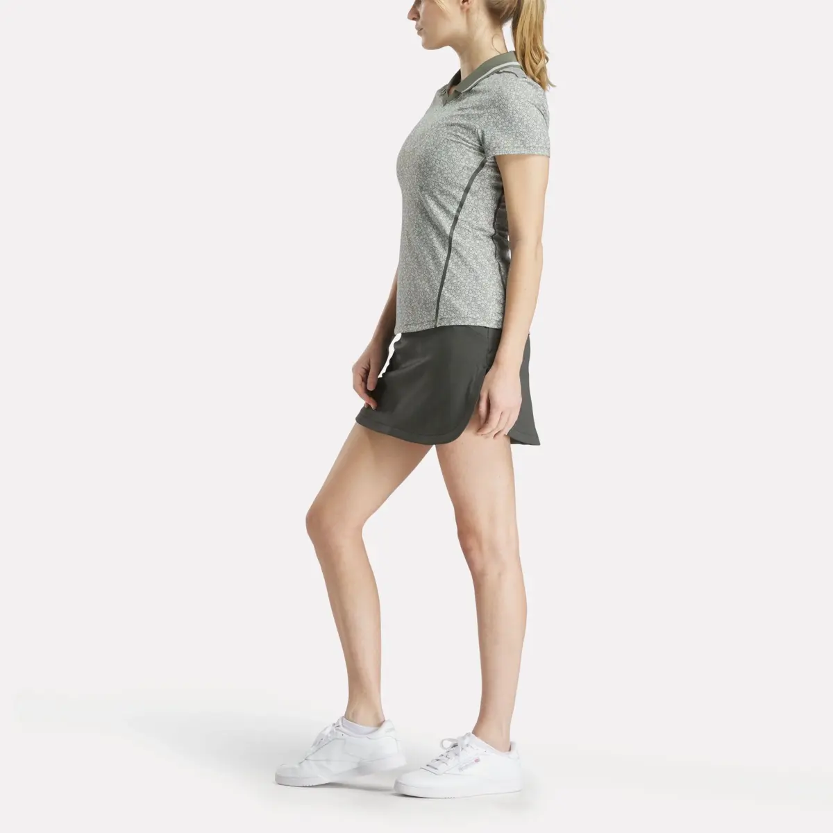 Climb the leaderboard in style in this women’s Reebok golf polo shirt. Stretchy fabric gives you a full range of motion, and RBK-DRY wicks sweat to help you stay comfortable. A johnny collar and allover floral print keeps your look on point from the course to the clubhouse.
