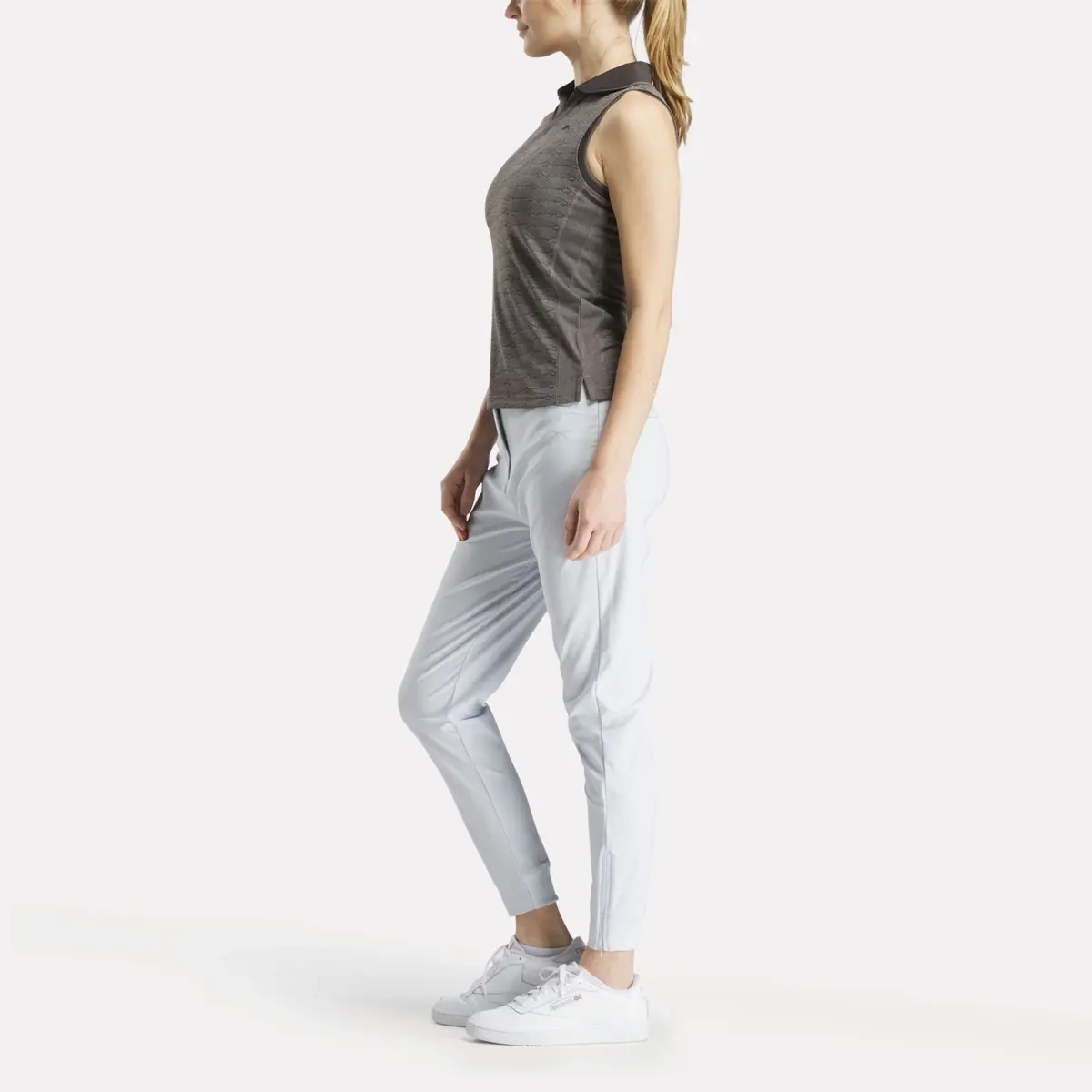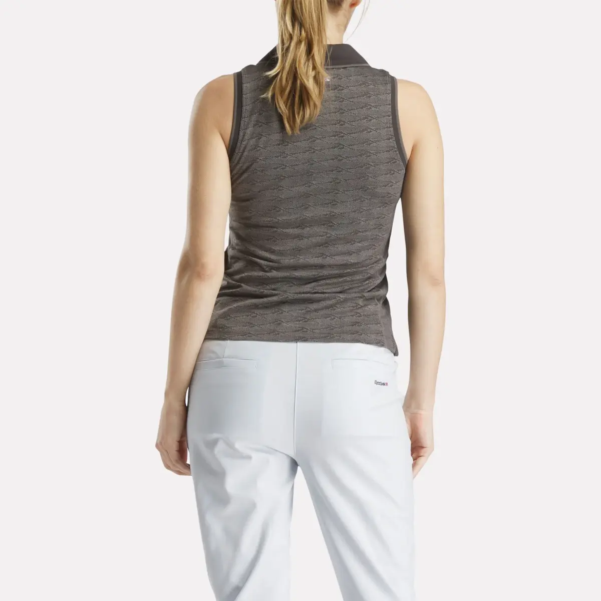 Stay cool on the course in this women’s Reebok polo shirt. The sleeveless design and RBK-DRY tech help you stay cool, dry and comfortable and keep your mind on your golf game. A collared V-neck and Vector jacquard design elevate your style for the clubhouse.