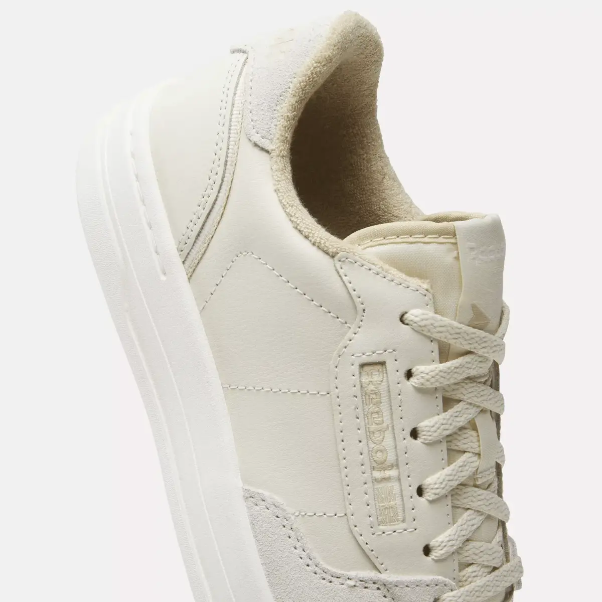 The neutral colors may fool you on these women’s Reebok Phase Court shoes. But the leather upper that plays doubles with a suede toe cap and heel tab lets you know they’re anything but simple. Pair them up with something low-key or loud. Both work.